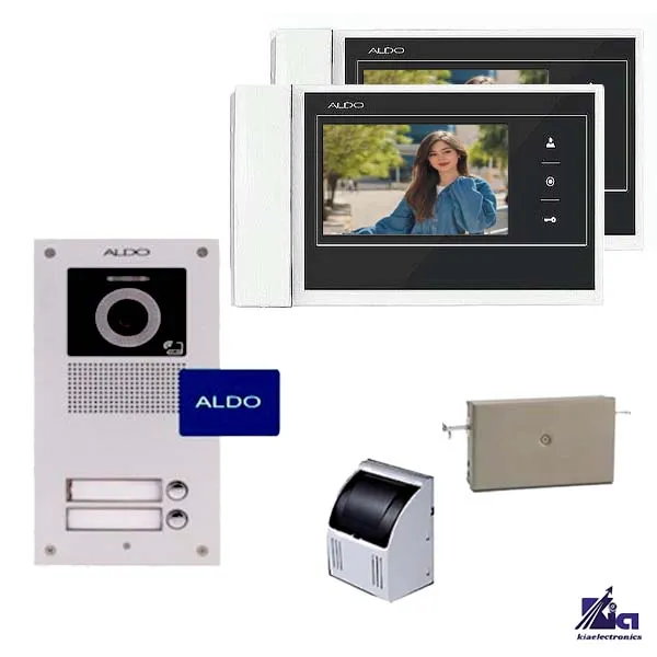 پکیج آیفون تصویری آلدو 727M سفید دو واحدی با پنل کارتی